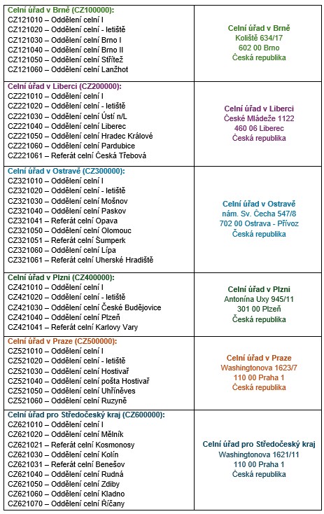 V praxi zatím zůstává stejný počet poboček, kde probíhá celní řízení, na dosavadních adresách, dojde ale ke změně názvu a přečíslování pracovišť pod nové kódy, které se budou používat v celních prohlášeních jako celní úřady vývozu, dovozu a ukončení režimu tranzitu.